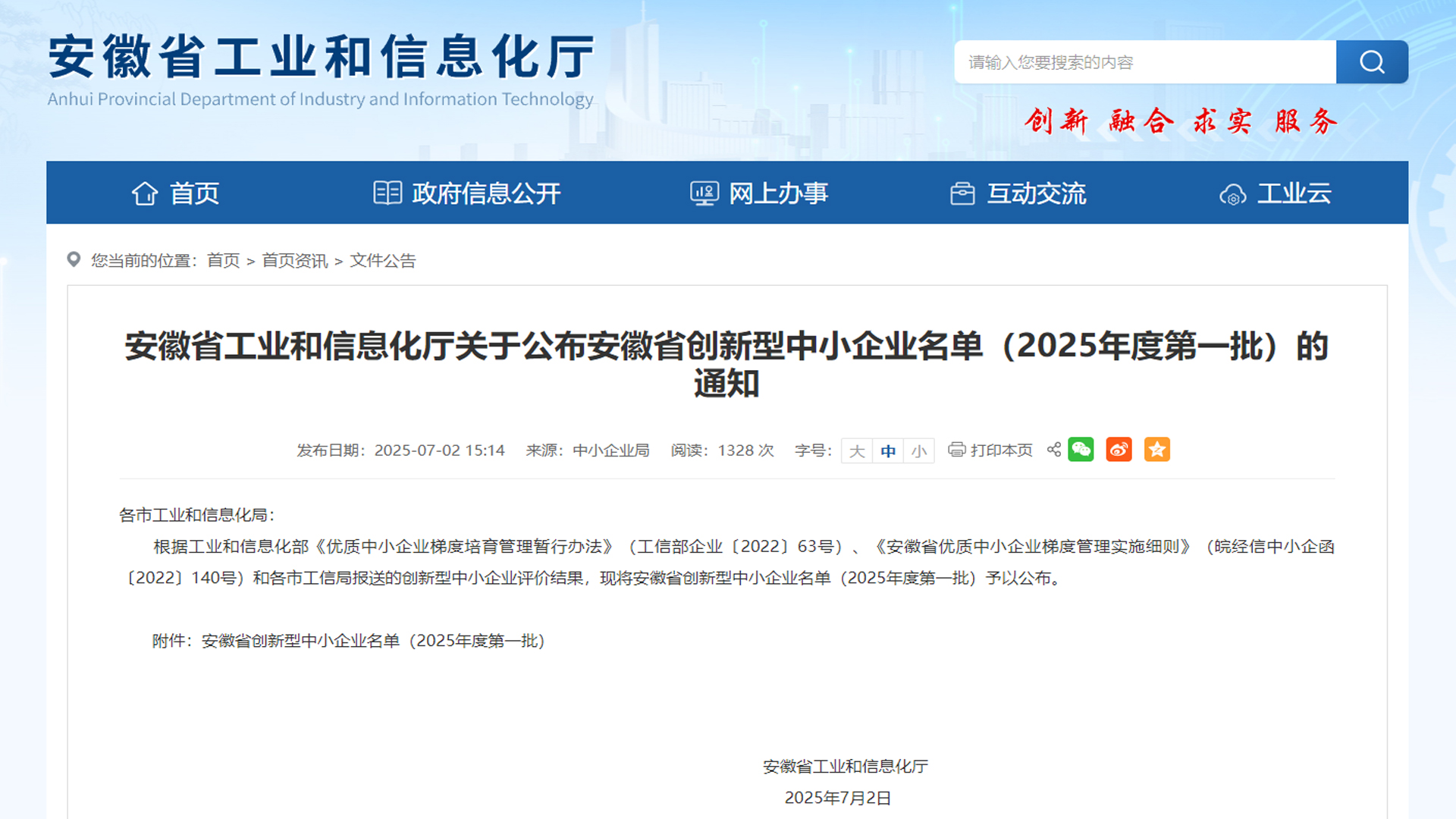 近日,安徽省工業和信息化廳發布《關于公布安徽省創新型中小企業名單(20…